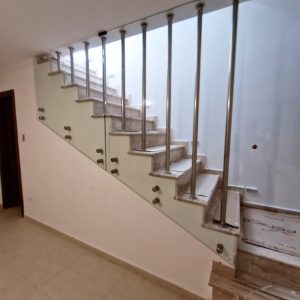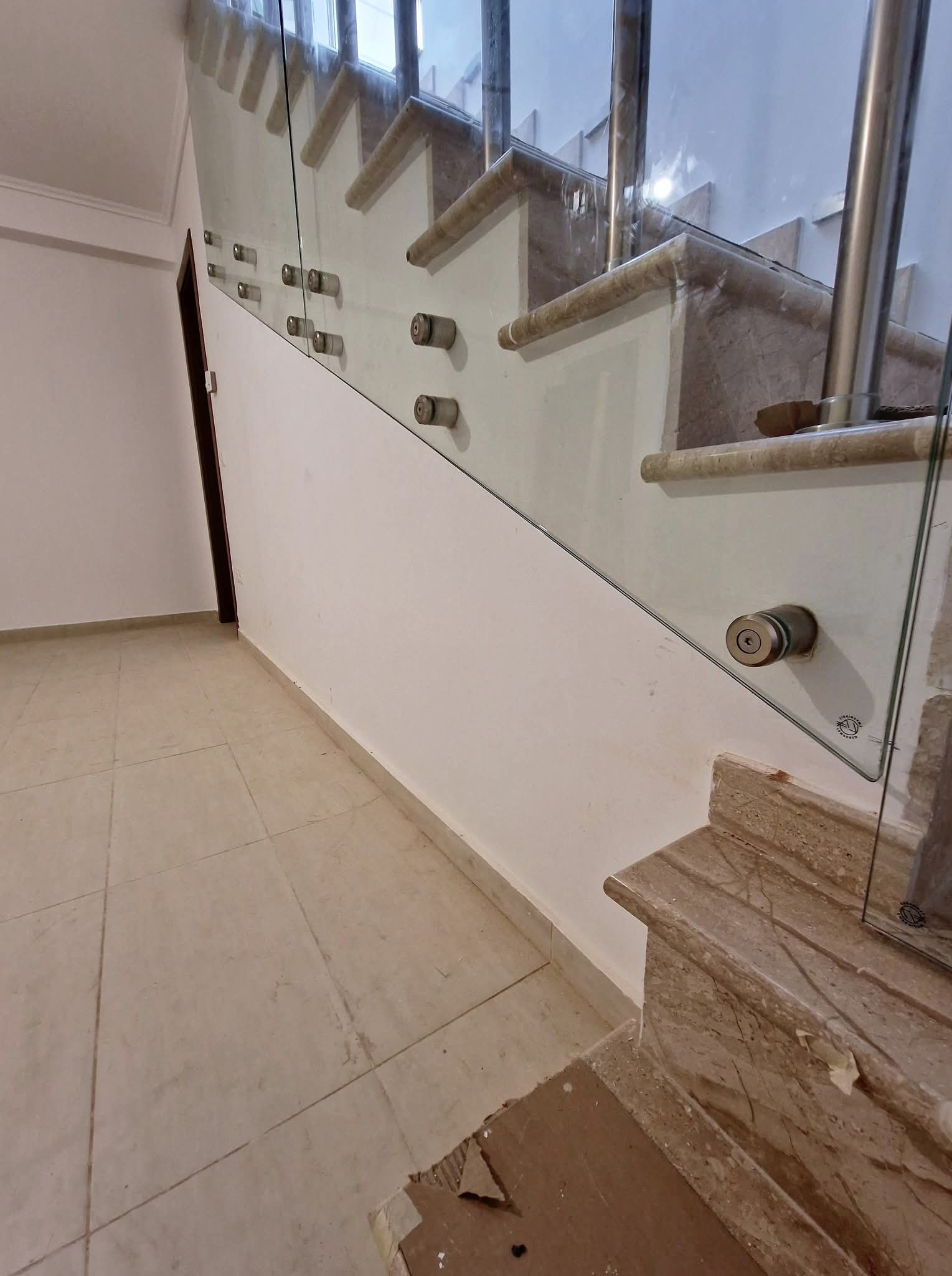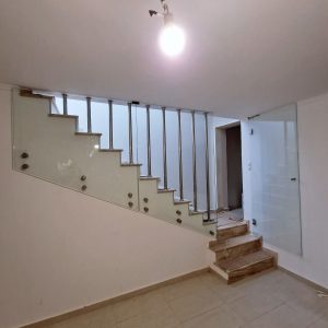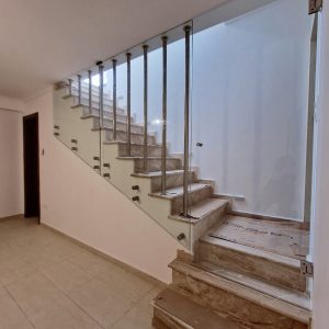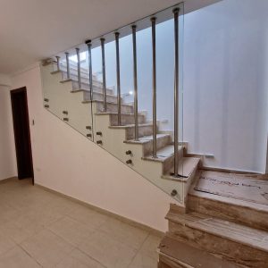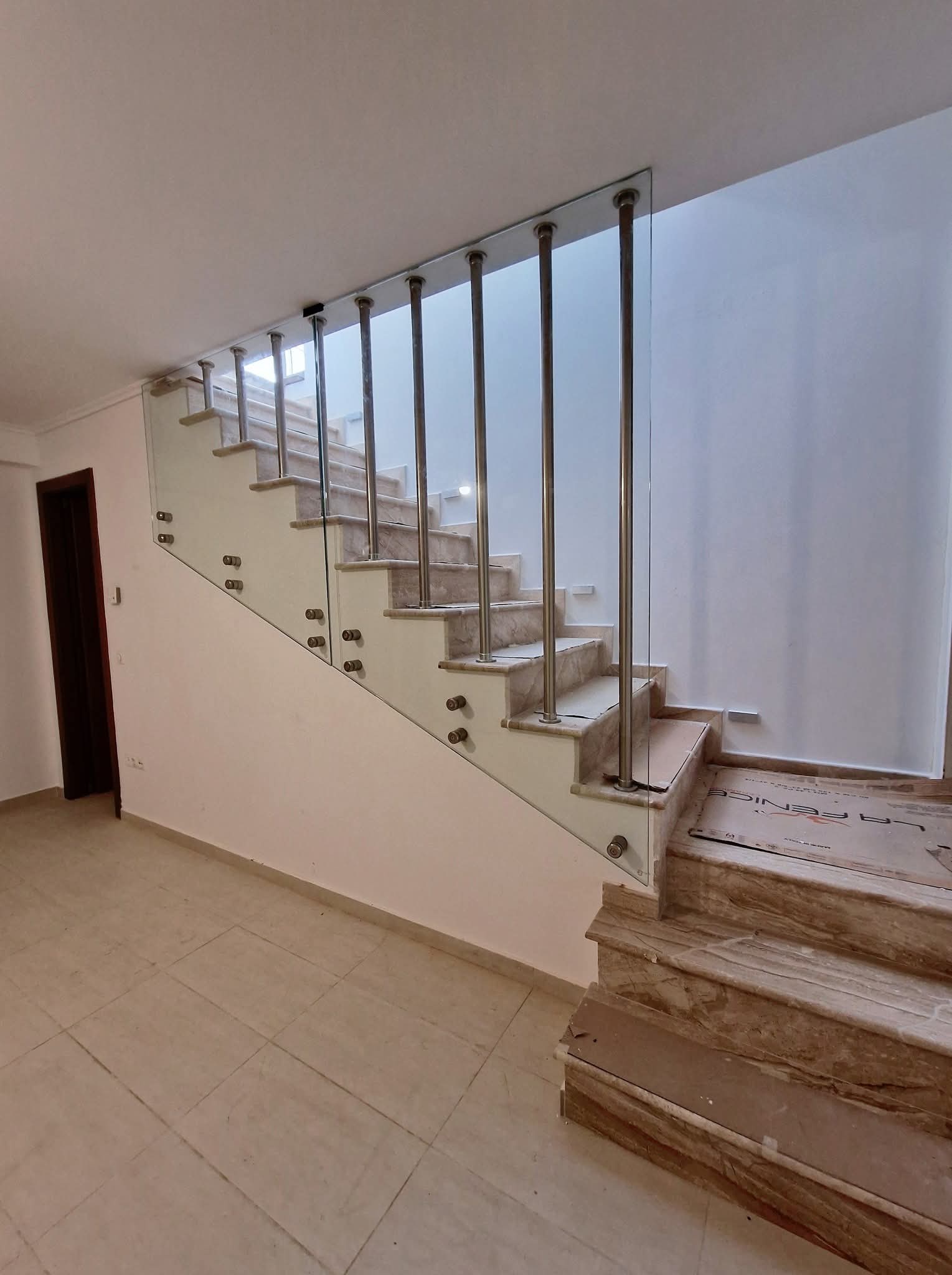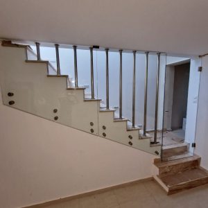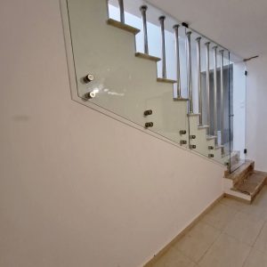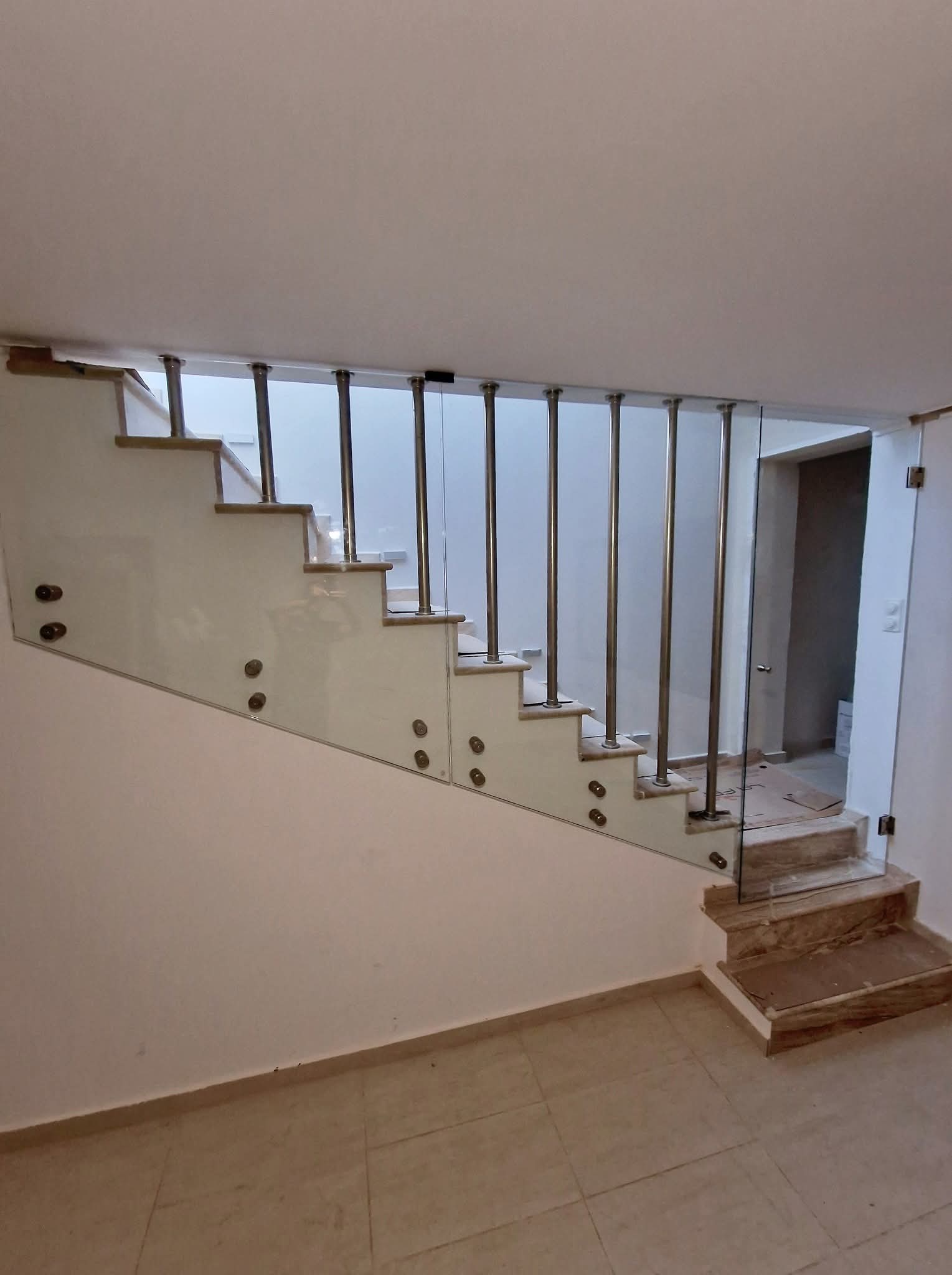 Γυάλινα κάγκελα σε σκάλα με ανοξείδωτες στηρίξεις με πόρτα!!!