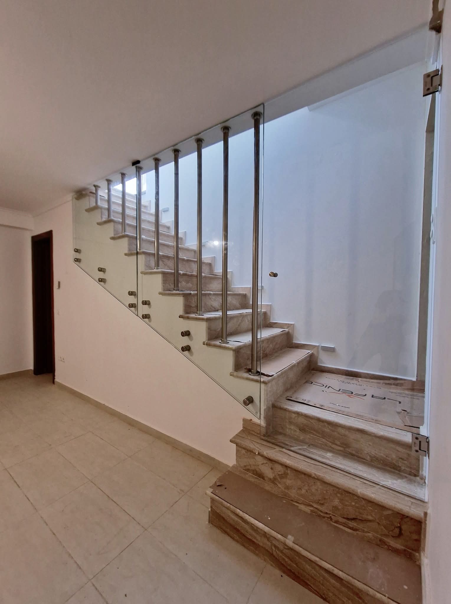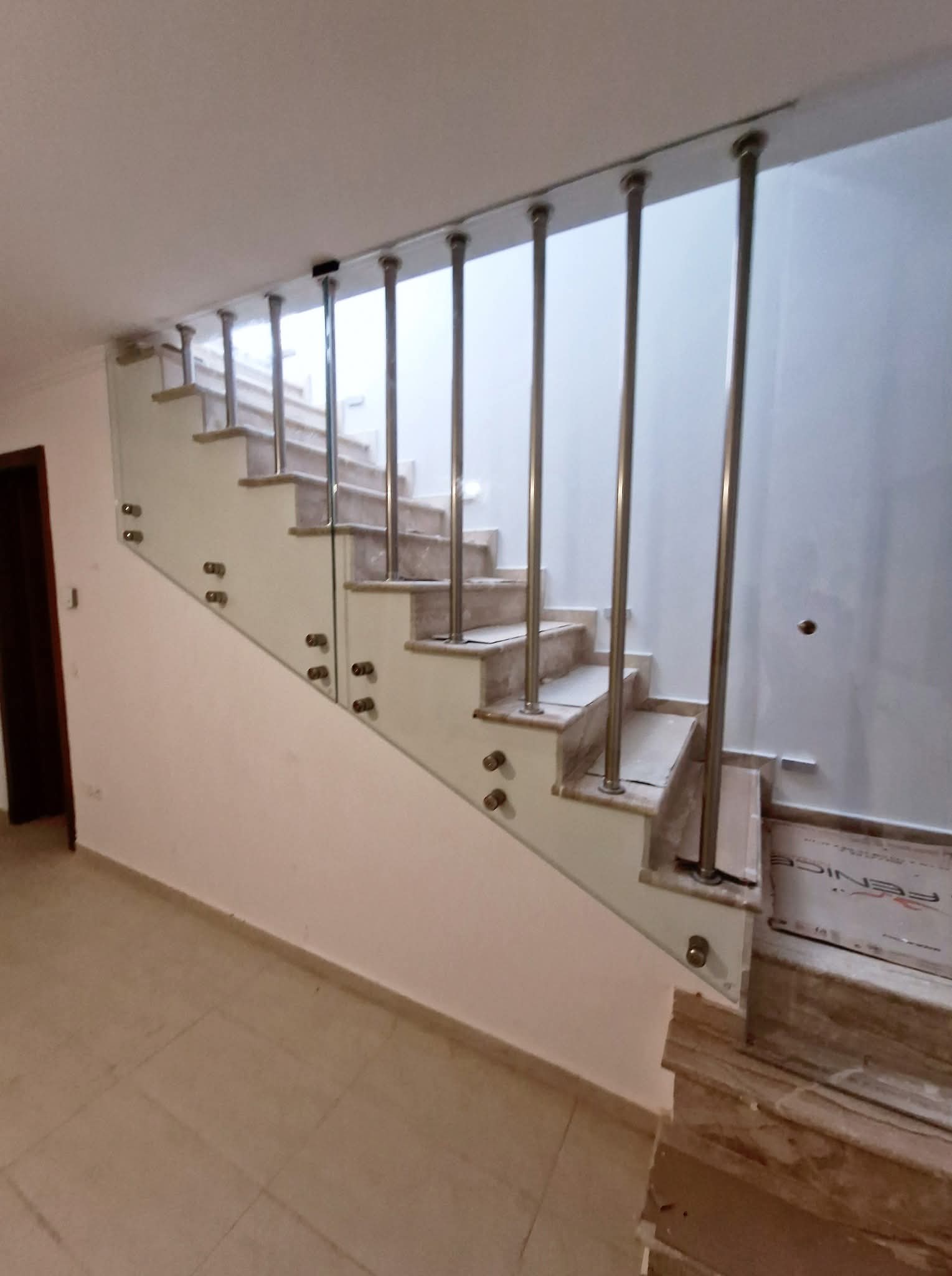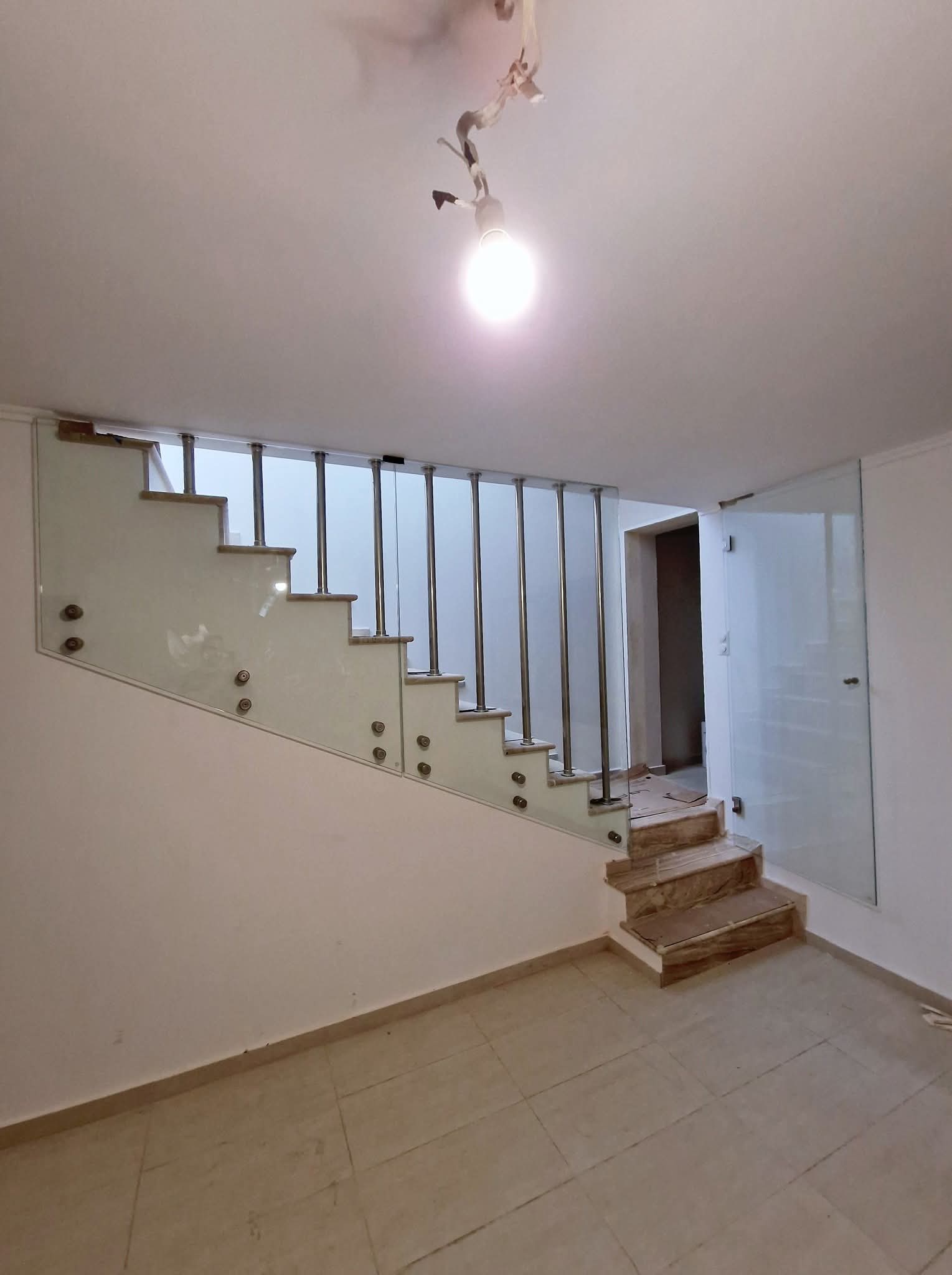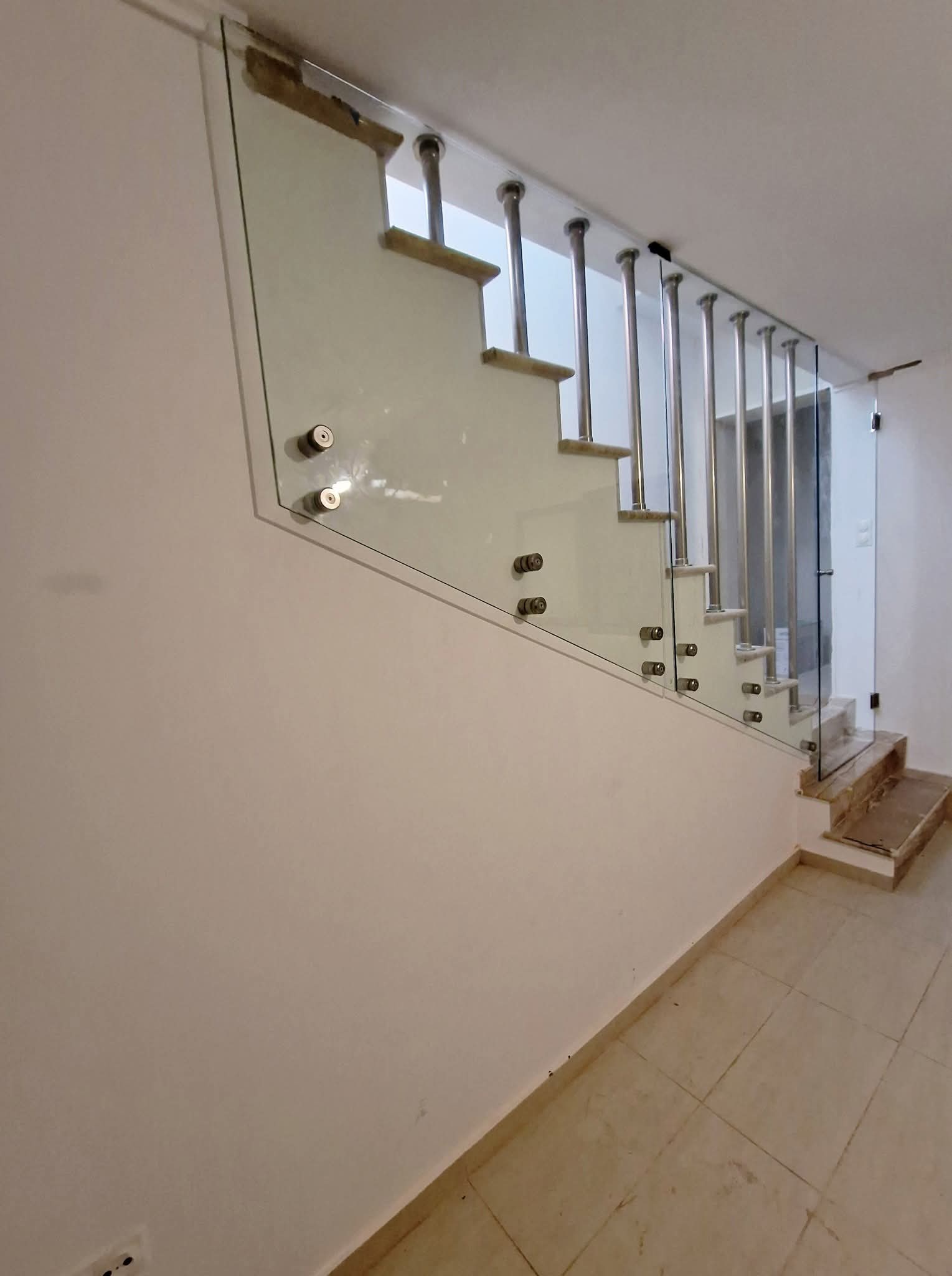 Γυάλινα κάγκελα σε σκάλα με ανοξείδωτες στηρίξεις με πόρτα!!!
